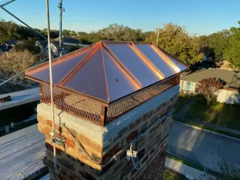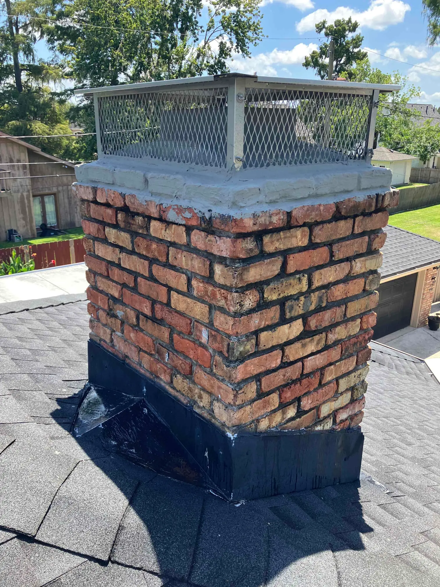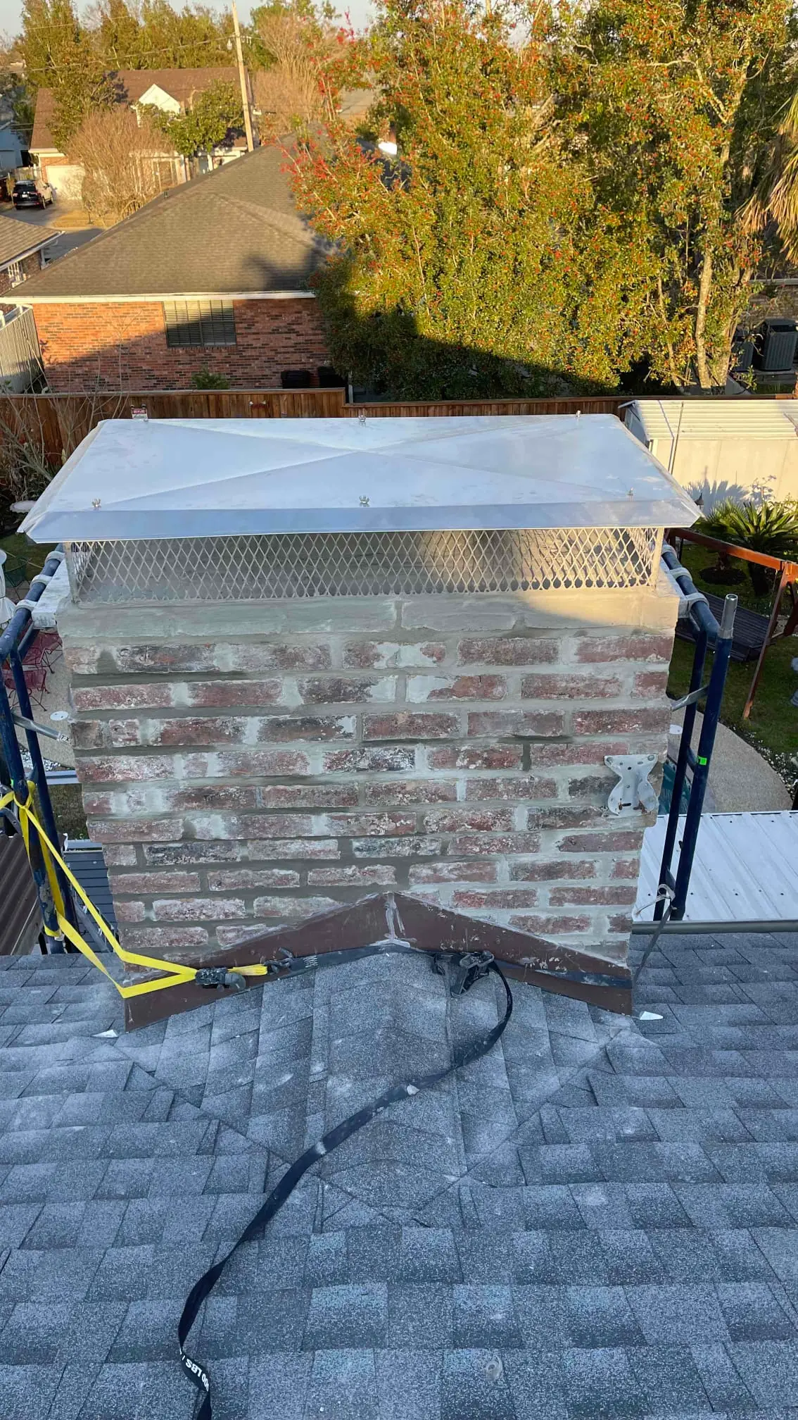 We use stainless steel or copper chimney caps, durable mesh guards, and sealants designed for long-term chimney flue protection. These materials withstand Louisiana weather and resist corrosion.